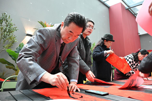 活動當(dāng)天,鄭州市文聯(lián)的書法家們受邀來到現(xiàn)場。他們個個精神飽滿,手執(zhí)毛筆,在一張張紅紙上揮灑自如,書寫著寓意深遠的新年序言。這些序言既是對過去一年的總結(jié),也是對新年的美好期許。書法家們的精彩表演贏得了現(xiàn)場觀眾的連連稱贊,租戶們紛紛表示:“書法家們寫的字真是太好了!‘福’字看著就喜慶,春聯(lián)的寓意也都非常美好。”