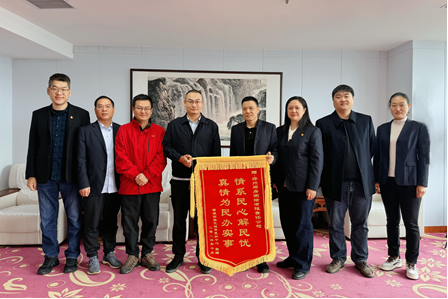 圖為鄭州鄭房測繪有限責任公司為群眾辦實事,群眾代表贈予錦旗贊揚。