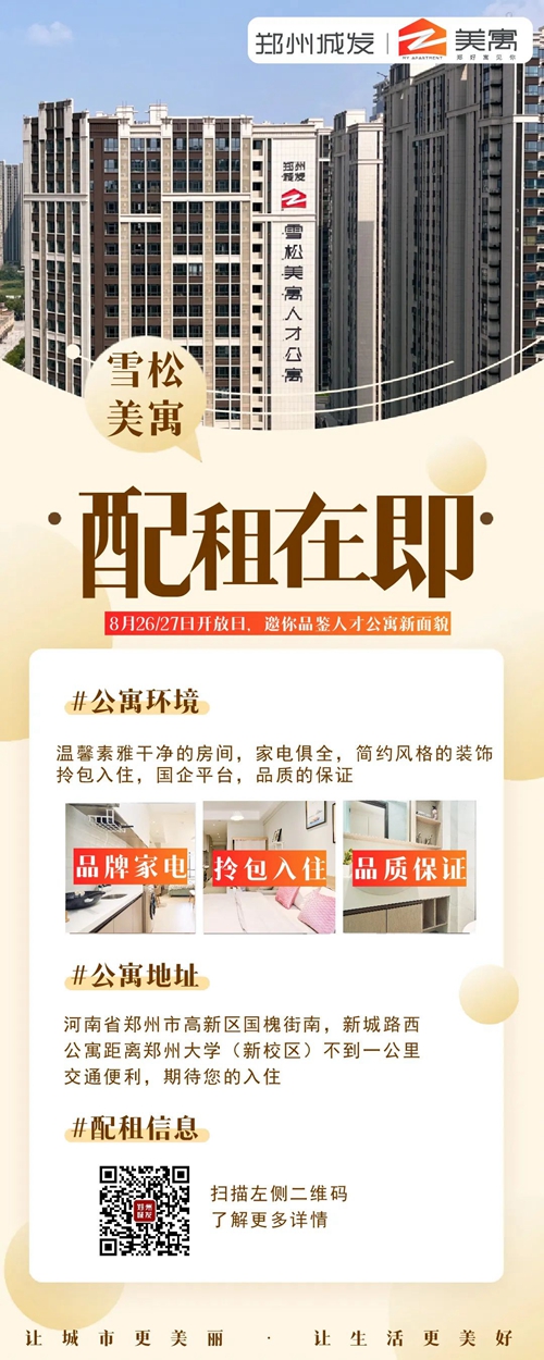 小學(xué)都開學(xué)了,各位畢業(yè)大學(xué)生是不是也都找到心儀的工作了?靈魂拷問——找到心儀的房子了么?押金難退、房租高貴、環(huán)境嘈雜夜不能寐......好房子不好找?城發(fā)美寓再放大招——雪松美寓新項(xiàng)目開業(yè)啦!