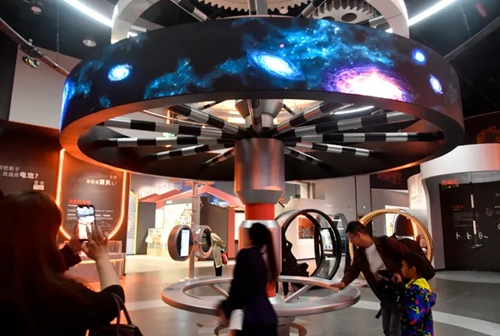 最夢(mèng)幻的是“追光之旅”展廳。一進(jìn)這個(gè)展廳,仿佛能沉浸式體驗(yàn)星際穿越的樂(lè)趣。這里打破單純講解理論知識(shí)和科學(xué)現(xiàn)象的傳統(tǒng)模式,用講故事的方式串聯(lián)起相關(guān)展項(xiàng),讓整個(gè)展廳形成一套完整的故事體系,生動(dòng)還原了科學(xué)探索的過(guò)程。追光之旅的旅程是回答“光是什么?”的過(guò)程,在這個(gè)過(guò)程中我們通過(guò)“認(rèn)識(shí)光的傳播”“駕馭光的路徑”“探索光的本質(zhì)”“運(yùn)用光的新知”四個(gè)分主題帶領(lǐng)觀(guān)眾了解光學(xué)的發(fā)展歷程。