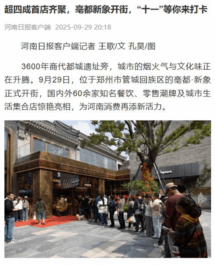 以“傳統風(fēng)貌現代文化商業(yè)街區”為定位,該項目深度融合3600年商都文脈與現代商業(yè)活力,以40%的首進(jìn)品牌占比和精心策劃的文商旅融合體驗,為鄭州打造了一張嶄新的城市文化名片。