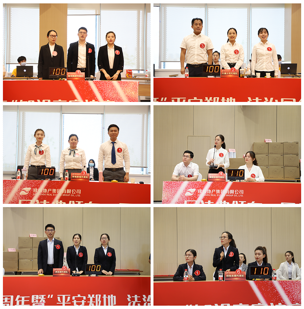 地產(chǎn)集團(tuán)總部及10家子公司廣泛參與,本次競(jìng)賽共有12支隊(duì)伍報(bào)名參賽。經(jīng)過(guò)緊張激烈的預(yù)賽比拼,最終有6支隊(duì)伍突出重圍,進(jìn)入決賽。決賽賽程分為必答題、爭(zhēng)分奪秒題、搶答題、挑兵點(diǎn)將題、風(fēng)險(xiǎn)題五個(gè)環(huán)節(jié),圍繞民法典、平安建設(shè)、精神文明建設(shè)等內(nèi)容開(kāi)展競(jìng)賽答題活動(dòng)。答題環(huán)節(jié),各代表隊(duì)展現(xiàn)出了精湛的理論素養(yǎng)、扎實(shí)的法律功底、靈活的應(yīng)變能力和精誠(chéng)合作的團(tuán)隊(duì)精神,精彩的表現(xiàn)贏得現(xiàn)場(chǎng)觀眾的陣陣掌聲。經(jīng)過(guò)幾個(gè)環(huán)節(jié)激烈的角逐,最終地產(chǎn)集團(tuán)西流湖公司代表隊(duì)摘得桂冠。