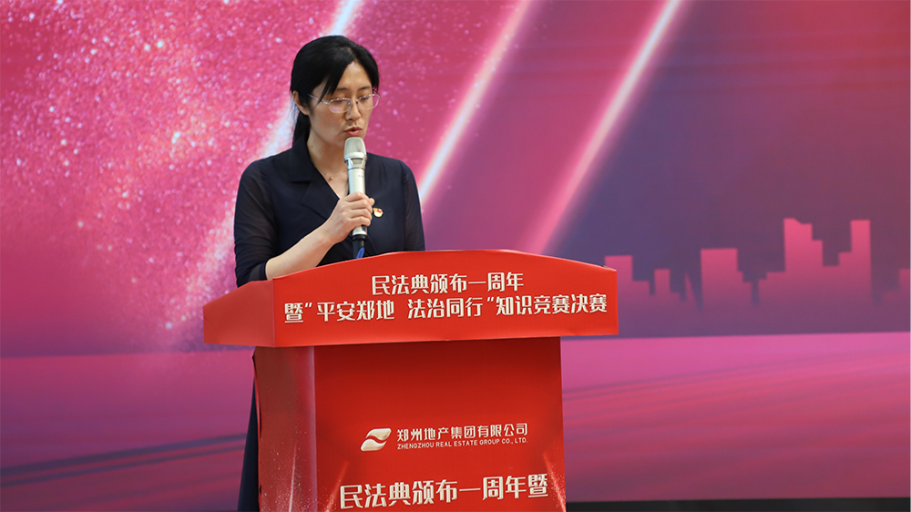 為深入貫徹落實(shí)習(xí)近平總書記關(guān)于民法典學(xué)習(xí)宣傳的重要講話精神及市國(guó)資委2021年度普法依法治理工作要點(diǎn)相關(guān)要求,引導(dǎo)全體職工深入學(xué)習(xí)民法典及相關(guān)法律知識(shí),提升職工干部學(xué)法懂法守法用法的能力,5月28日,在民法典頒布一周年之際,鄭州地產(chǎn)集團(tuán)主辦、西流湖公司和鄭地發(fā)展公司承辦的“平安鄭地 法治同行”知識(shí)競(jìng)賽總決賽在金岱科創(chuàng)城商務(wù)服務(wù)中心舉辦,在市屬國(guó)企系統(tǒng)掀起學(xué)法普法的熱潮。鄭州市國(guó)資委黨委委員、副主任孟慶平、信訪處處長(zhǎng)夏建新、法規(guī)處副處長(zhǎng)張珂應(yīng)邀出席本次活動(dòng)。